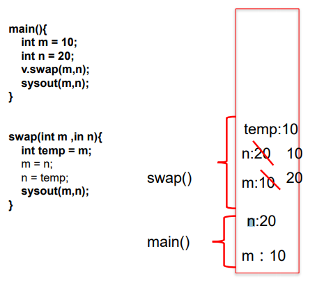 • 有返回值,声明出返回值的类型。与方法体中“return 返回值”搭配使用 方法名:属于标识符,命名时遵循标识符命名规则和规范,“见名知意” 形参列表:可以包含零个,一个或多个参数。多个参数时,中间用“,”隔开 返回值:方法在执行完毕后返还给调用它的程序的数据。