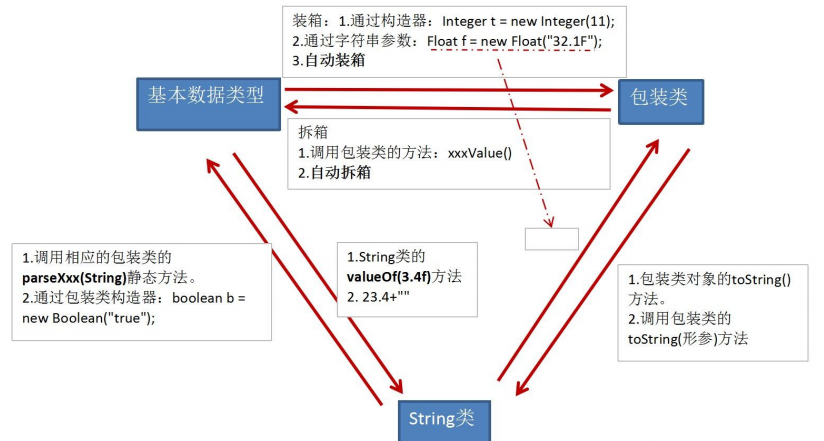 2. 通过包装类的parseXxx(String s)静态方法实现: Float f = Float.parseFloat(“12.1”);